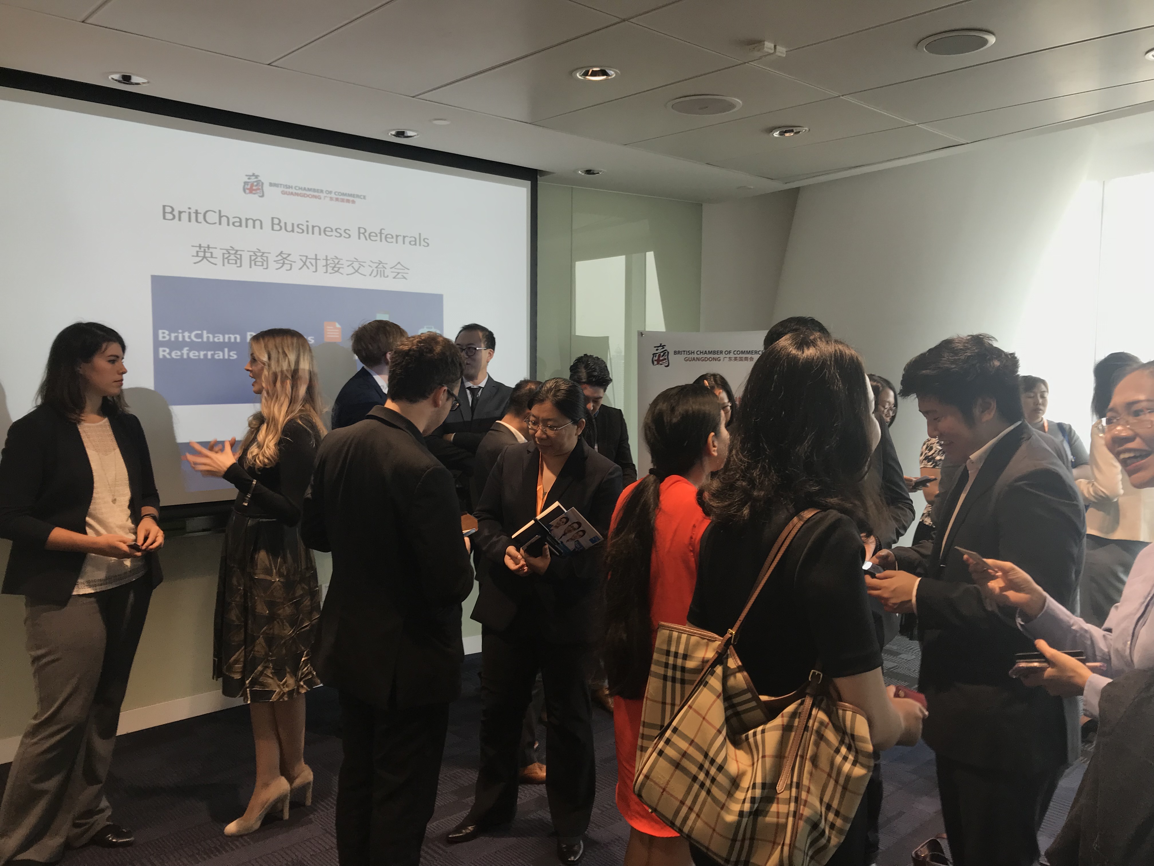 英商商务对接交流会于2017年10月25号星期三在广州英国中心举行。这是广东英国商会2017年举行的第三场英商商务对接交流会。我们很高兴邀请到18个公司30位代表来参加这场交流会。